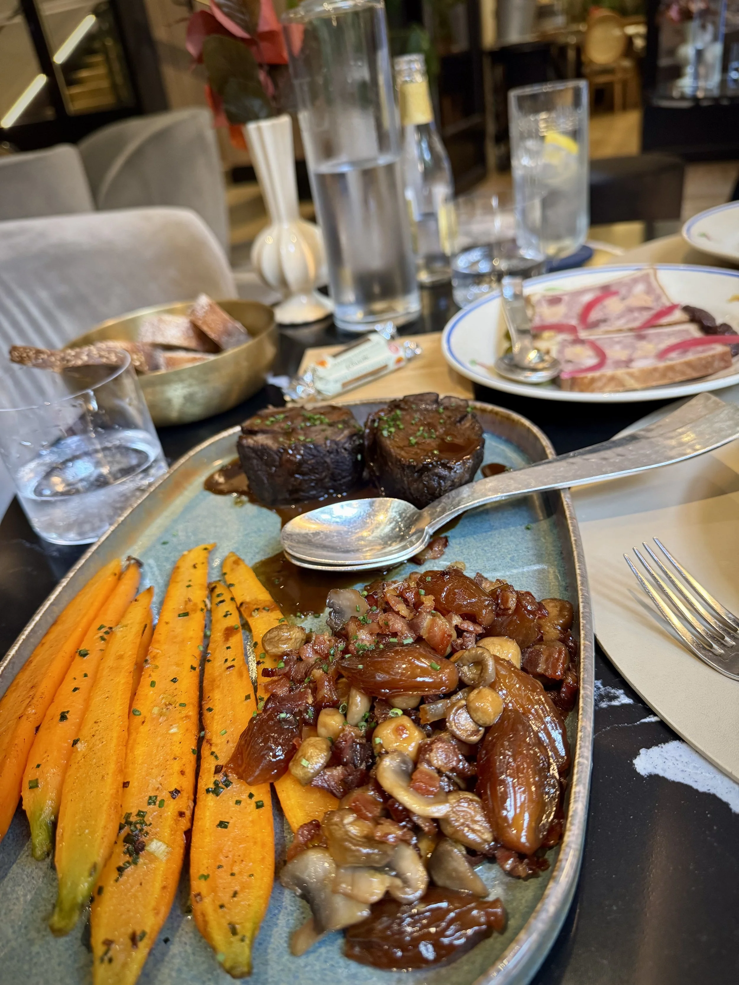 I have to talk about the restaurant. Breakfast was amazing. The croissants were impossibly flaky—I may have indulged in 2 or 3 each morning. On Sunday we had the Sunday roast, their version of weekend brunch. Pâté en croûte, beautifully done beef, sauteed mushrooms, roasted carrots and a chocolate pear tart. Heaven.