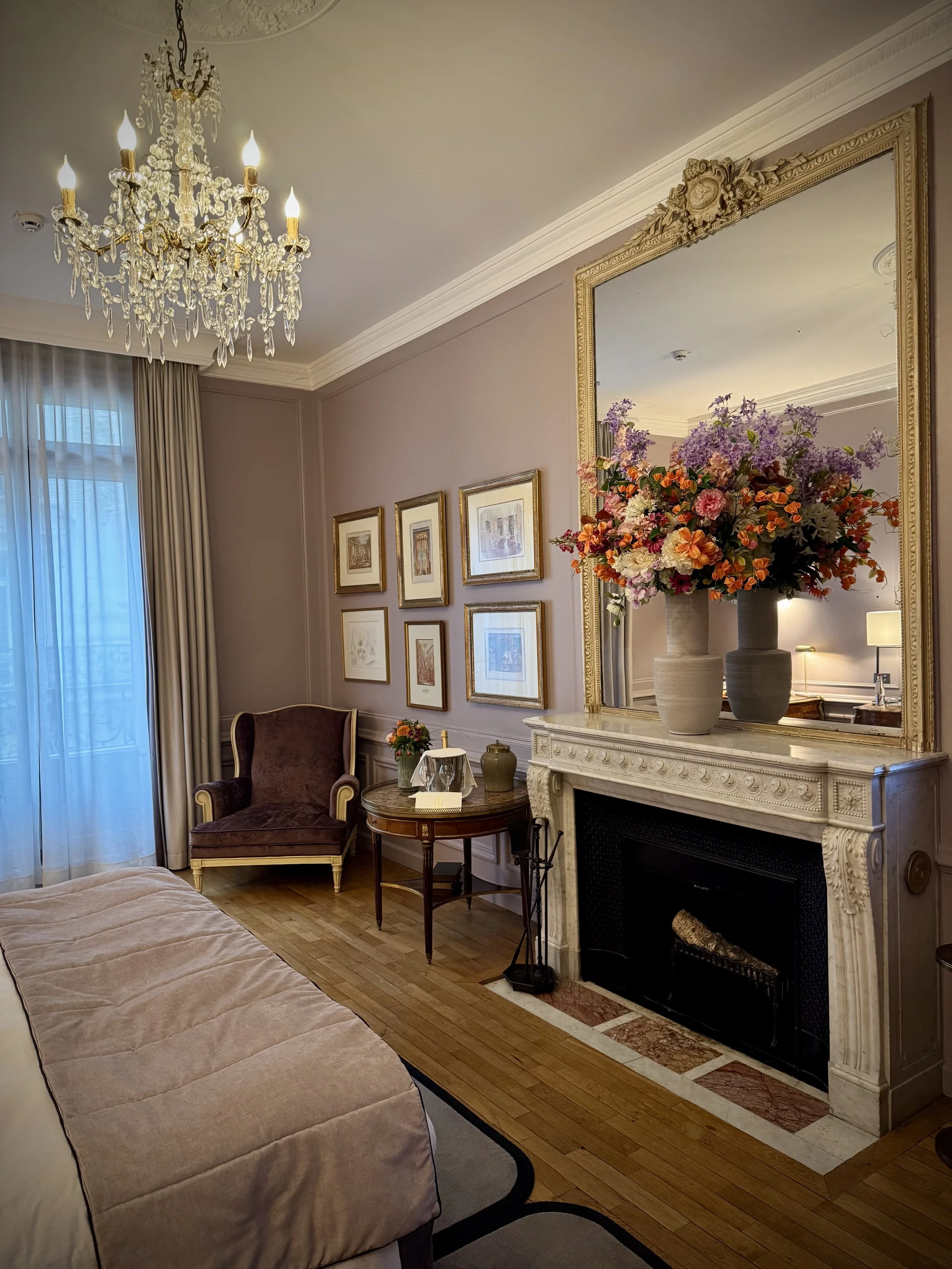 Our second visit was after our river cruise with Ama. We jumped on a train from Basel to Paris, an easy 3 and a half hour ride. We grabbed a taxi outside the train station and drove straight into the glory that is Paris on our way to theHotel Lancaster. We were tired as we checked in and the staff could not have been more welcoming. Staying here is like staying in your own Parisian townhouse. The hotel is an old soul, inviting and elegant, modern touches melded with old school glamour. The rooms are large, with high ceilings, wood floors, fireplaces, crown molding and giant windows that open up to the street.
